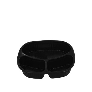 3 Cavity Oval Black Tray 10pc T731 [227x179x33]